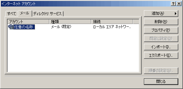 設定済みアカウントの一覧が表示されますので、変更をするアカウントを選択して[プロパティ]ボタンをクリックします。