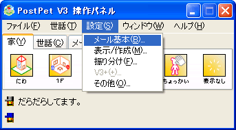 PostPetを起動して、メニューバーの[設定]をクリックして[メール基本]を選択します。