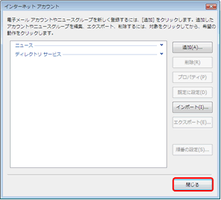 以上でメールの設定は完了です。〔閉じる〕をクリックし画面を閉じてください。
